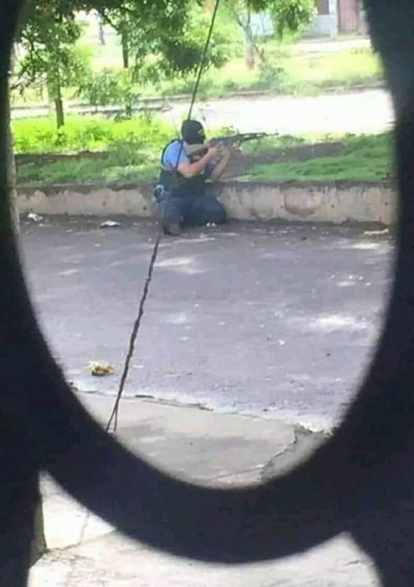 La foto es elocuente: un paramilitar encapuchado dispara contra la población civil. La guerra contra la paz. La muerte contra la vida. La opresión contra la libertad.